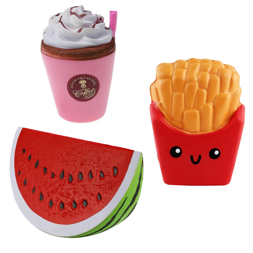 Squishies Pack 3 X SUPER SLOW RISING -- Take only one hand and give a big squeeze, you will be pleasantly surprised at how slow rising this squish...